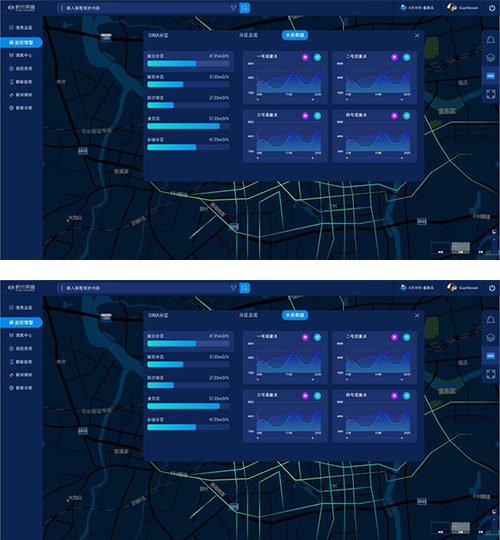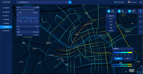 在线压力、流量、水质、供水分区分析;实时调度方案生成与评估。