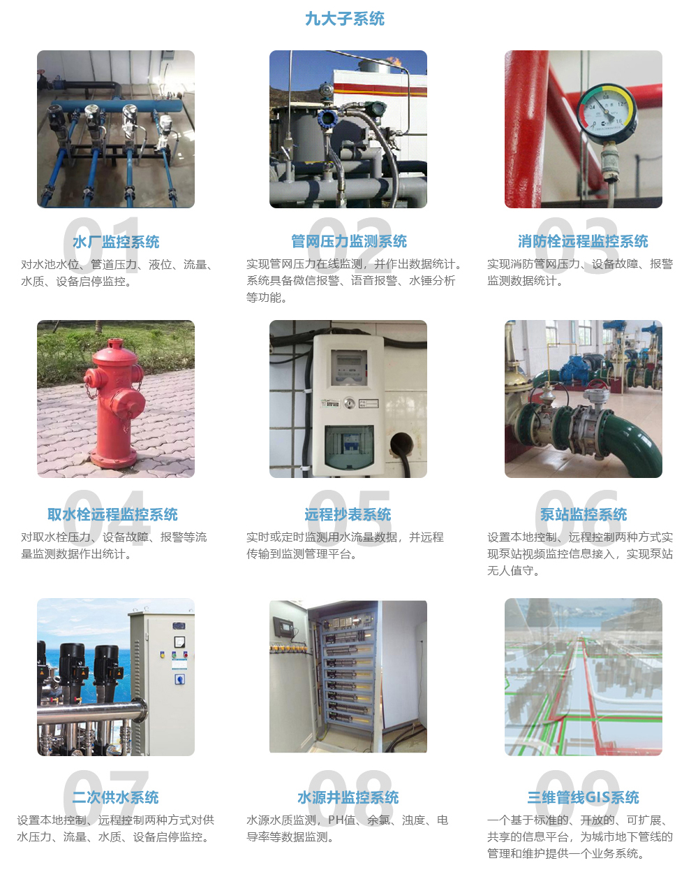 监控和实时分析各类水厂、泵站、管网以及二次供水设备;