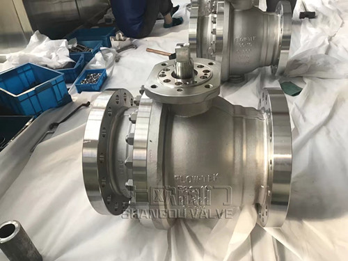 3、球体采用超英速喷涂耐磨合金粉材料,阀座更有堆焊司太立石硬质合金以及喷涂其它超耐磨合金材料处理。