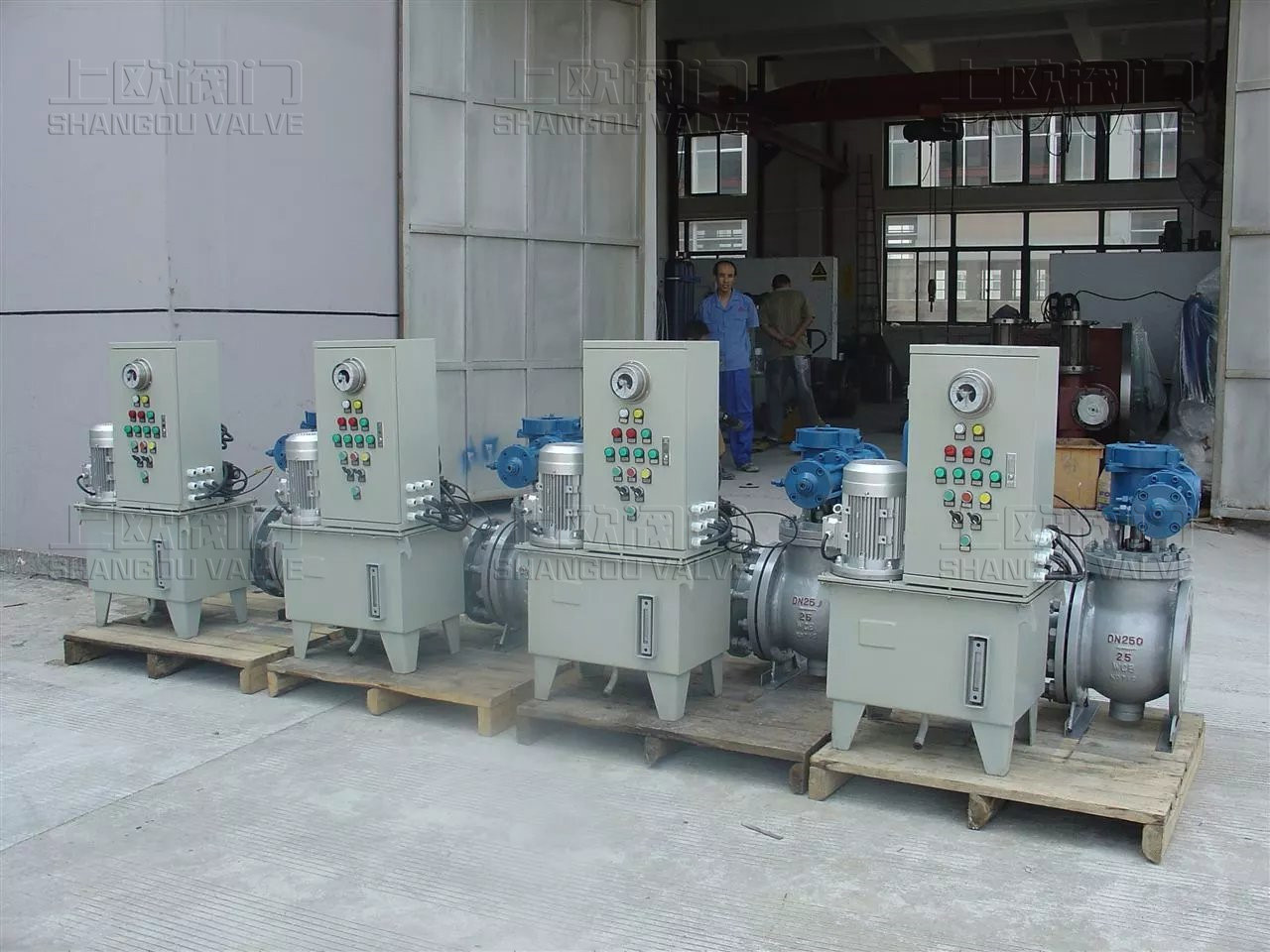 液动水电球阀的整套装备主要由主球阀、阀前短管、伸缩节、旁通管路、旁通阀、排污阀、传动机构、液压系统及其泵站,电控制系统等十部分组成。