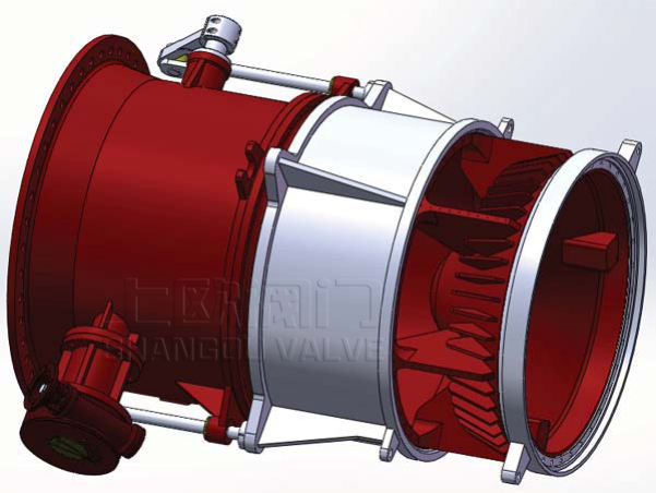 固定锥形阀由执行机构,机械驱动,带60号哈氏合金垫条的焊接钢体,60号哈氏合金阀座。喷管与固定锥通过呈放射状的叶片支撑与连接。喷管与椎体之间保留一段无管壁开放段,套筒闸安装在喷管外部,通过套筒闸的轴向移动改变无管壁开放段的长度,起到调整阀门开度的作用。阀门出口处可根据实际工况设置导流罩,导流罩可约束阀门出口水流的流态,可以进一步避免气蚀的破坏和喷射范围过大的损害。管中型锥形阀一般应加导流罩,使阀门后端管道免受气蚀破坏。排放型安装在管道的末端,起泄压、保压和水位控制等作用。